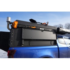 Rücksendungen per GLS Return innerhalb von 1-3 Tagen. Rücksendung per Mail an sales@emsland4x4.deDer Alu-Cab Drop Down Tisch ist die ideale Ergänzung für alle Offroad- und Overland-Abenteuer. Entwickelt für den Einsatz am Alu-Cab ModCAP und Canopy Camper, lässt sich der klappbare Beistelltisch direkt in das C-Schienen-System des ModCAPs integrieren. Mit nur wenigen Handgriffen entsteht eine stabile Arbeitsfläche, die gleichzeitig als praktische Halterung für Sandbleche dient. Das durchdachte Design sorgt dafür, dass deine Bergebretter sicher verstaut und jederzeit griffbereit sind, während zusätzlicher Stauraum für Outdoor-Küche, Werkzeug oder weiteres Campingzubehör geschaffen wird. Gefertigt aus hochwertigem, schwarz pulverbeschichtetem Aluminium, ist der Tisch besonders robust, witterungsbeständig und für den dauerhaften Einsatz unter anspruchsvollen Bedingungen ausgelegt. Ob als Outdoor-Küchentisch beim Campen, als Ablagefläche bei Reparaturen oder als erweiterte Arbeitsfläche am Fahrzeug. Der Tisch hat eine Maximalbelastung von 10kg und eine Arbeitsfläche von 0,546m².