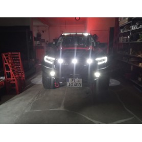 Die Voll-LED Scheinwerfer haben ein schwarzes Gehäuse mit Klarglasoptik , jeweils 3 LED Projektorlinsen um das gesetzlich geforderte Leuchtbild zu projizieren, Tagfahrlicht in F150 Style Optik als liegendes U, bei eingeschaltetem Abblendlicht oder Standlicht wird das Tagfahrlicht zum Standlicht. Seitlich ist ein orangener Sidemarker verbaut, die Blinkfunktion ist ein sequentieller Laufblinker im oberen Teil der Leuchte. Abblendlicht und fernlicht werden durch die LED hinter den Projektoren realisiert, das Fernlicht hat einen Ref.Wert von 20.