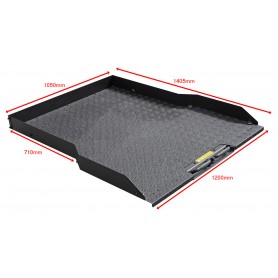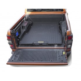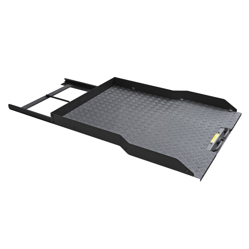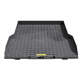 Die aus robustem Aluriffelblech gefertigte Schublade wird auf einer sehr stabilen Schiebeplattform montiert und kann mit bis zu max. 250kg Transportgut beladen werden. Der Ladeflächenauszug ist bereits vollständig montiert, lediglich die Verschraubung mit dem Fahrzeug (bohren erforderlich) muss noch durchgeführt werden.